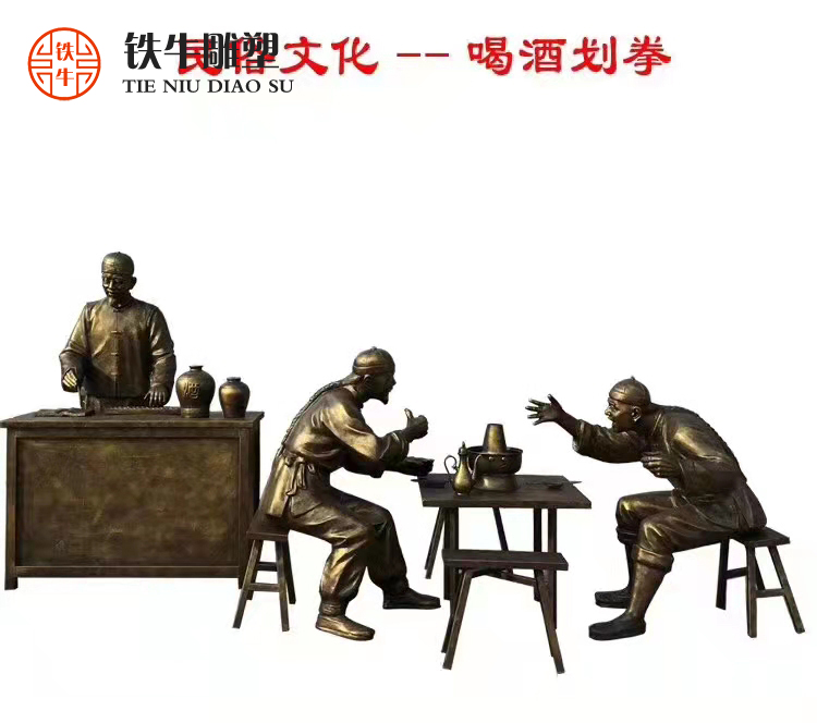 《喝酒划拳》玻璃钢仿铜雕塑